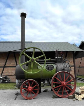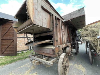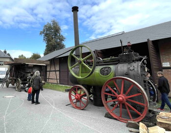 Parní mlátička se skládá ze dvou strojů - hnacího a hnaného.